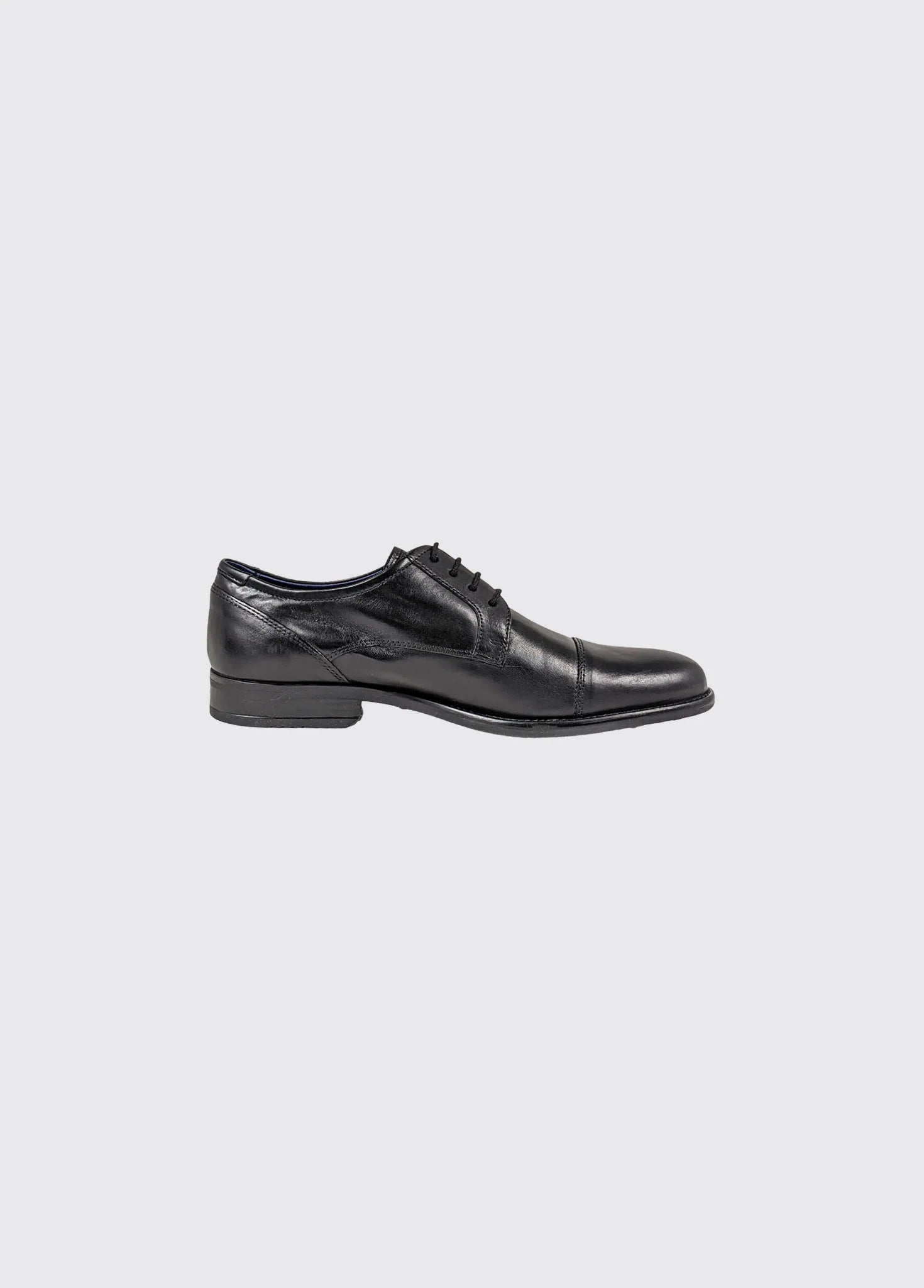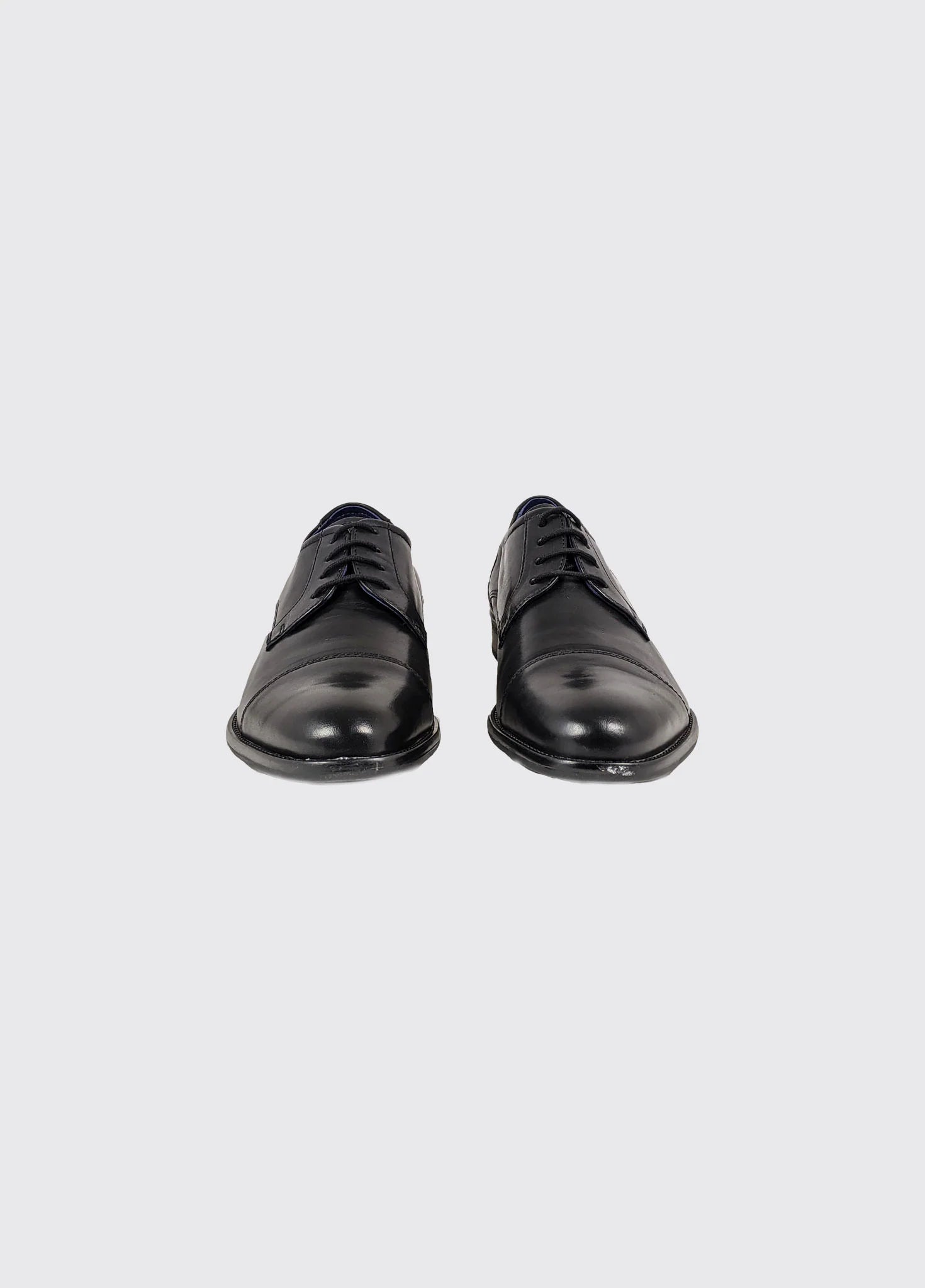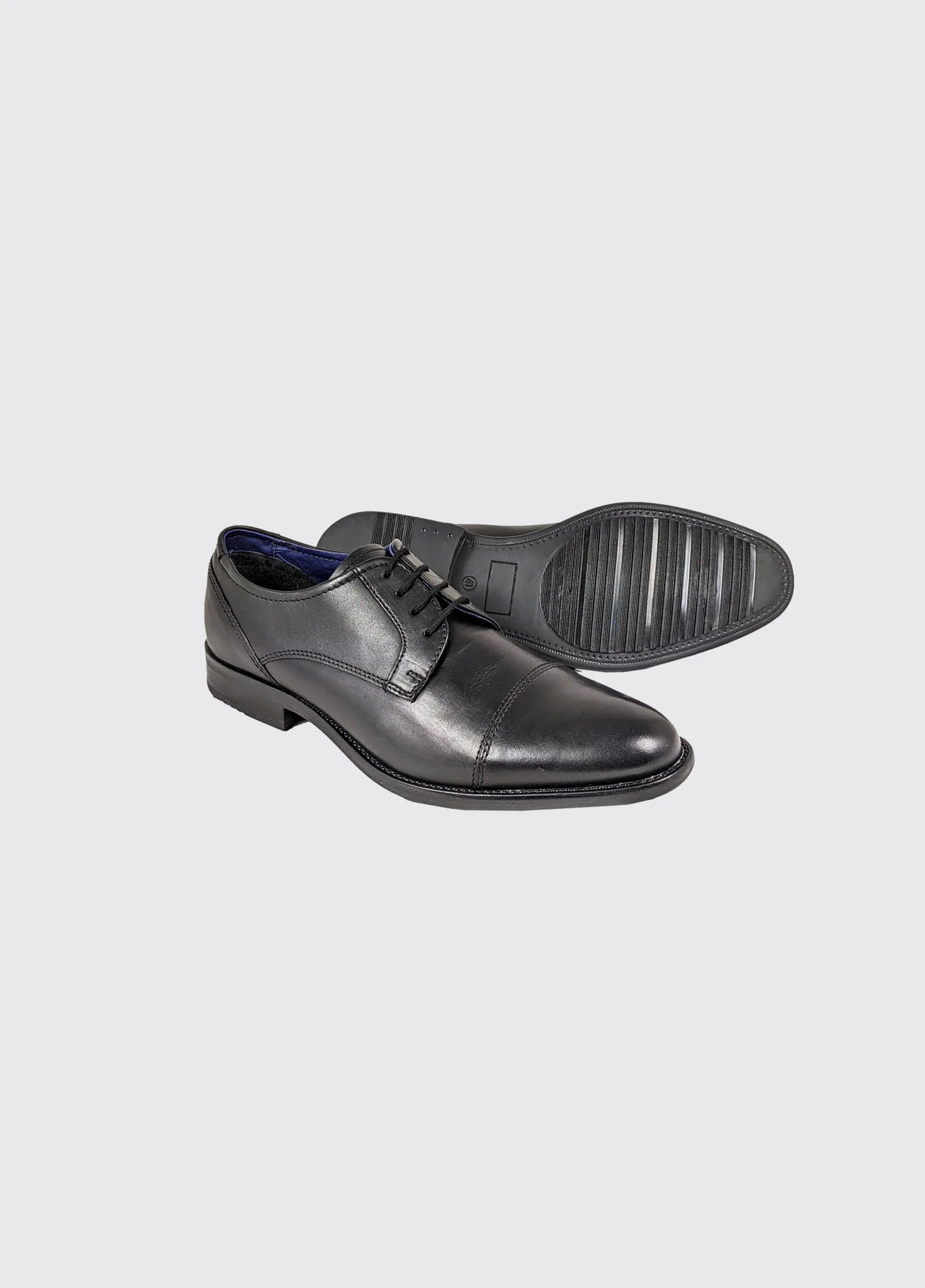 The Derek Toe Cap Lace Up Shoe in black is a classic design featuring a four-eyelet tie and timeless toe cap detailing. Crafted with a leather upper and a durable TPR sole unit, this shoe not only looks sharp but also offers long-lasting comfort and versatility. Ideal for formal occasions and professional settings, the Derek Toe Cap Lace-Up Shoe pairs perfectly with tailored suits or dress trousers, delivering a refined finish to any smart ensemble.