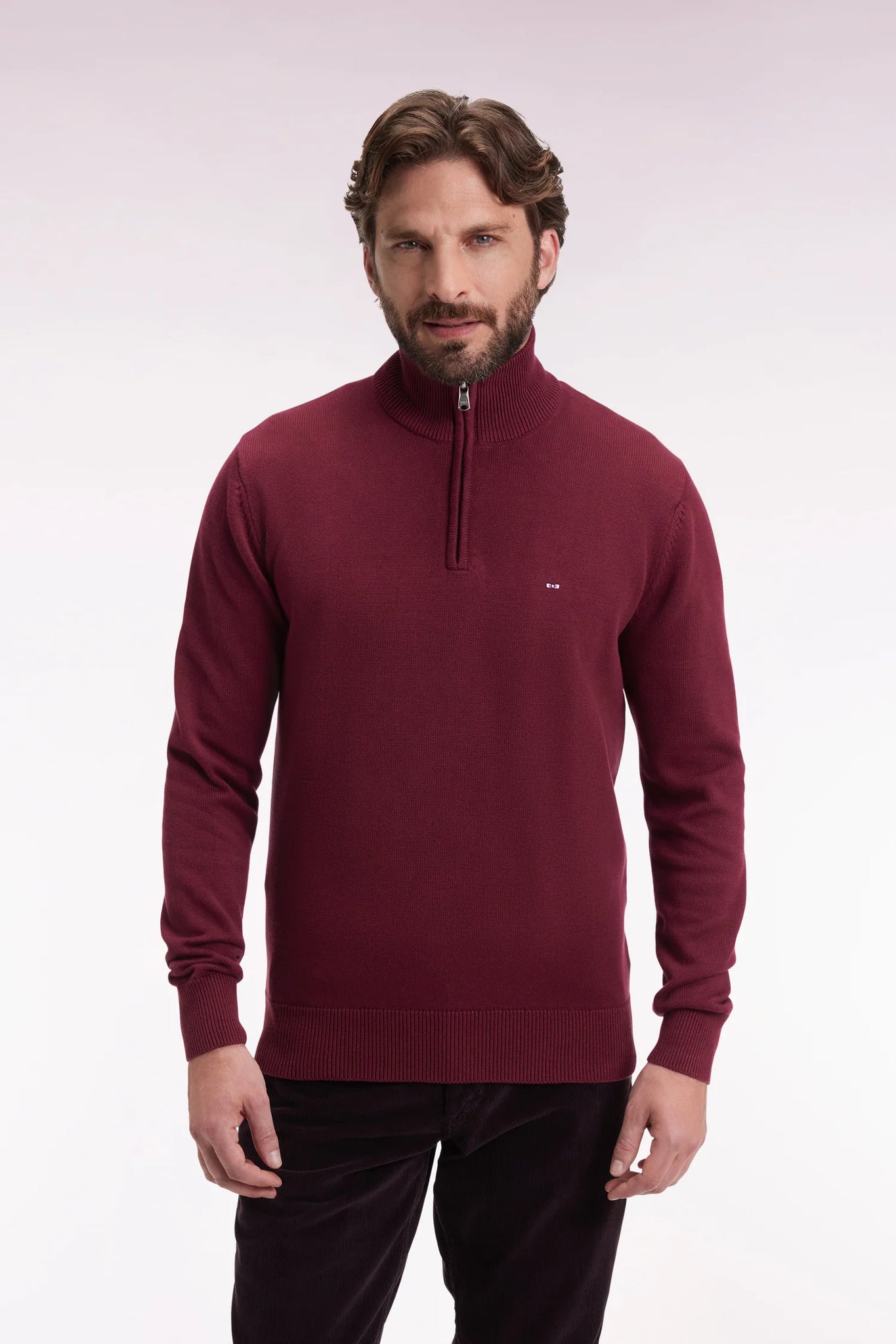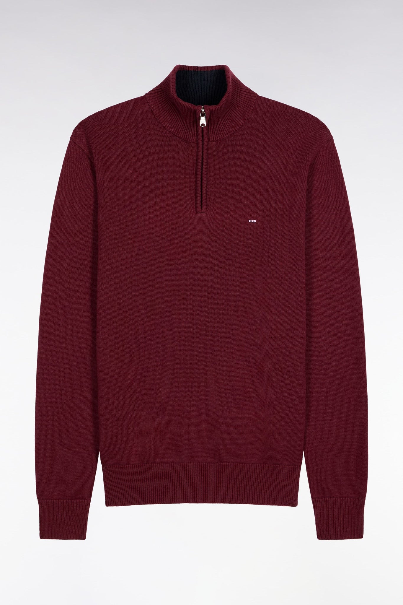 Designed for the first cold days, this men's zip-up trucker-neck sweater revisits our timeless model in a denser knit version. Made from 100% cotton, this semi-zipped sweater offers controlled warmth without sacrificing softness or breathability. Its high-zip collar allows you to modulate the look, closed for a structured silhouette or open for a more casual wear. Faithful to the DNA of our company, we feature the meticulous finishing touches that are the hallmark of Eden Park wardrobe essentials: bow-tie embroidery on the chest, knitted ribbing and rugby-striped half-moon inside.