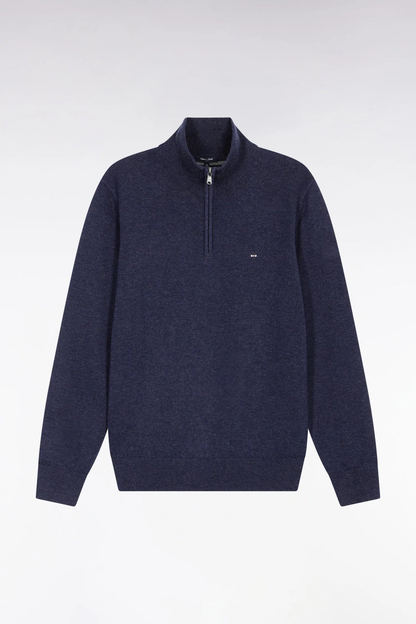 A men's wardrobe classic, the zipped trucker-neck sweater in wool and cotton blend embodies the functional elegance of the Eden Park wardrobe. Its comfortable straight cut lends itself to all kinds of layering. The bowtie embroidery on the chest and the signature slider zip give this timeless sweater the discreet signature of our French house.
