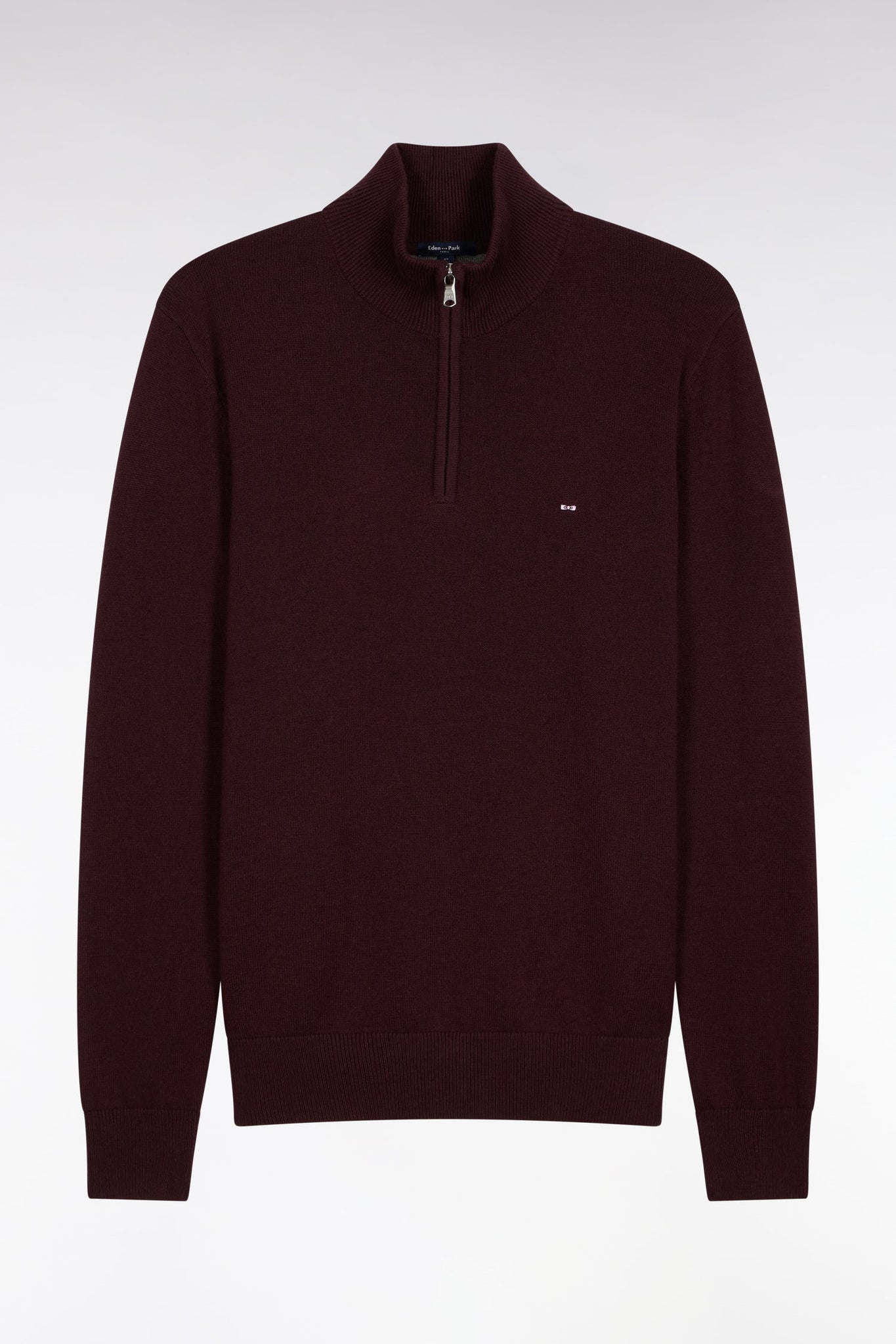 A men's wardrobe classic, the zipped trucker-neck sweater in wool and cotton blend embodies the functional elegance of the Eden Park wardrobe. Its comfortable straight cut lends itself to all kinds of layering. The bowtie embroidery on the chest and the signature slider zip give this timeless sweater the discreet signature of our French house.