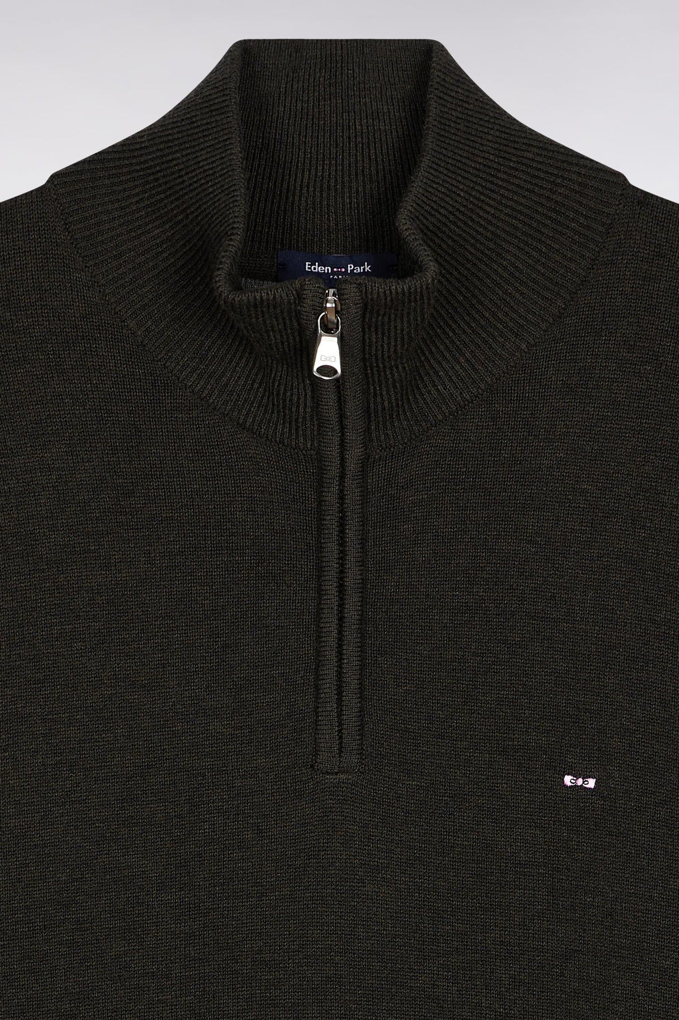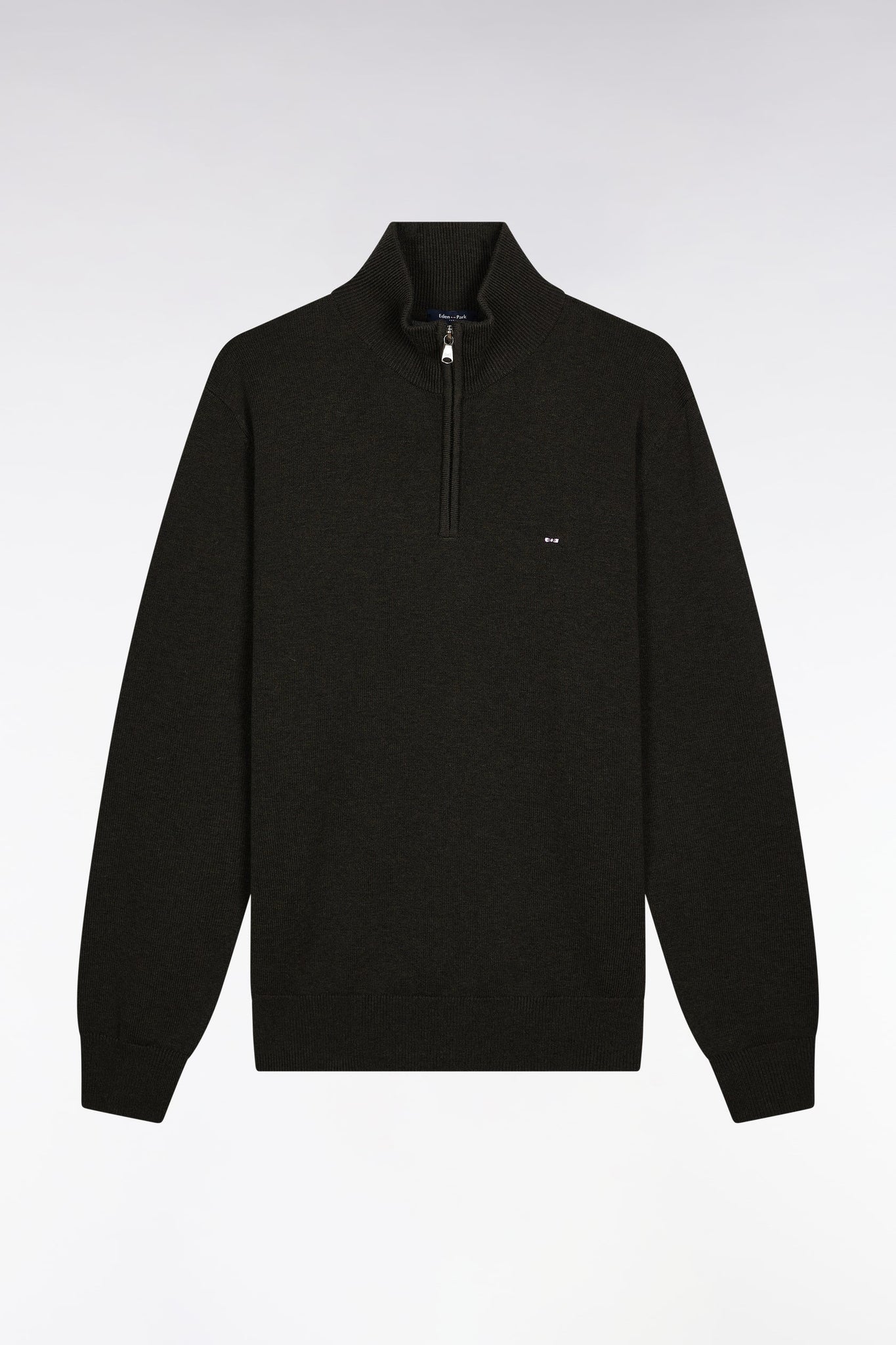 A men's wardrobe classic, the zipped trucker-neck sweater in wool and cotton blend embodies the functional elegance of the Eden Park wardrobe. Its comfortable straight cut lends itself to all kinds of layering. The bowtie embroidery on the chest and the signature slider zip give this timeless sweater the discreet signature of our French house.