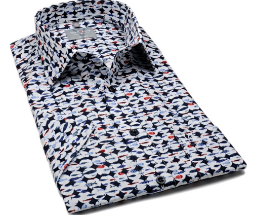 Marvelis - Modern Fit Short Sleeve Shirt, Fish Print