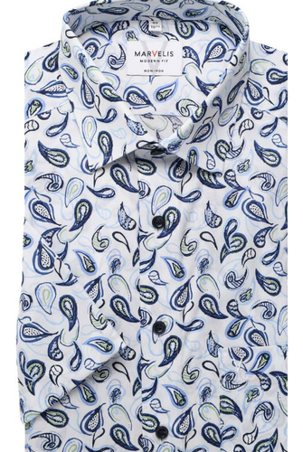 Marvelis - Modern Fit Short Sleeve Shirt, Blue Paisley