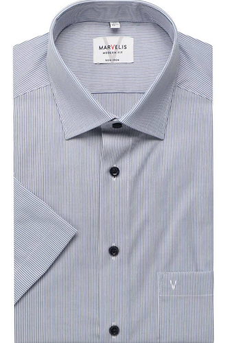 Marvelis - Modern Fit Short Sleeve Shirt, Navy and White Stripes