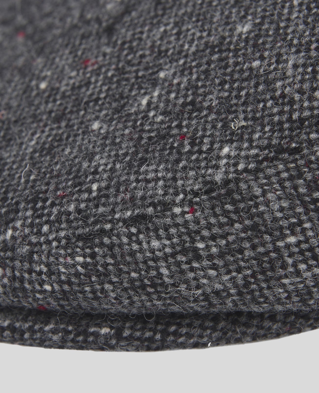 Crafted with 100% wool, the grey Salt & Pepper base is accented with flecks of red and white, adding the authentic textural character synonymous with Donegal Tweeds. Designed and woven at our mill in Donegal, this flat cap features a sewn down brim and quilted lining.
