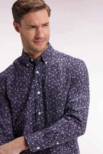 Eden Park - Cotton Straight-Cut Shirt, Navy Floral Pattern