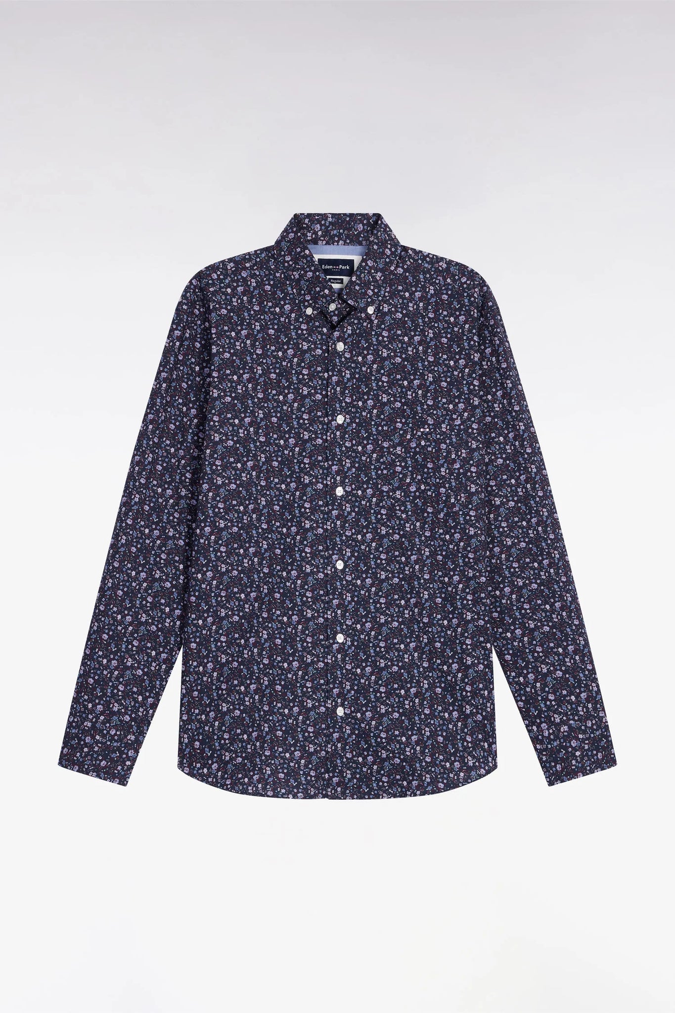 Eden Park - Cotton Straight-Cut Shirt, Navy Floral Pattern