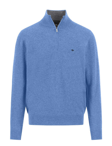 Fynch Hatton - Merino Cashmere, Quarter Zip, Crystal Blue