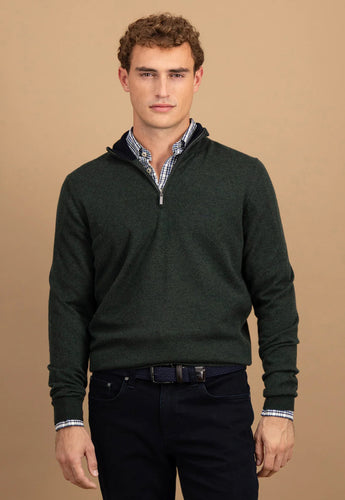 Fynch Hatton - Merino Cashmere, Quarter Zip, Dark Ivy