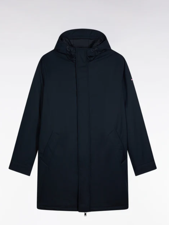The perfect balance between urban sobriety and protection against the elements. Its interior quilting provides ideal thermal comfort for mid-season and winter alike. Its silhouette adjusts with a discreet drawstring at the back and hood. The double-zip concealed under the button placket, practical pockets and iconic finishing reinforce the functional, refined look of this men's parka with soft-touch supplies.