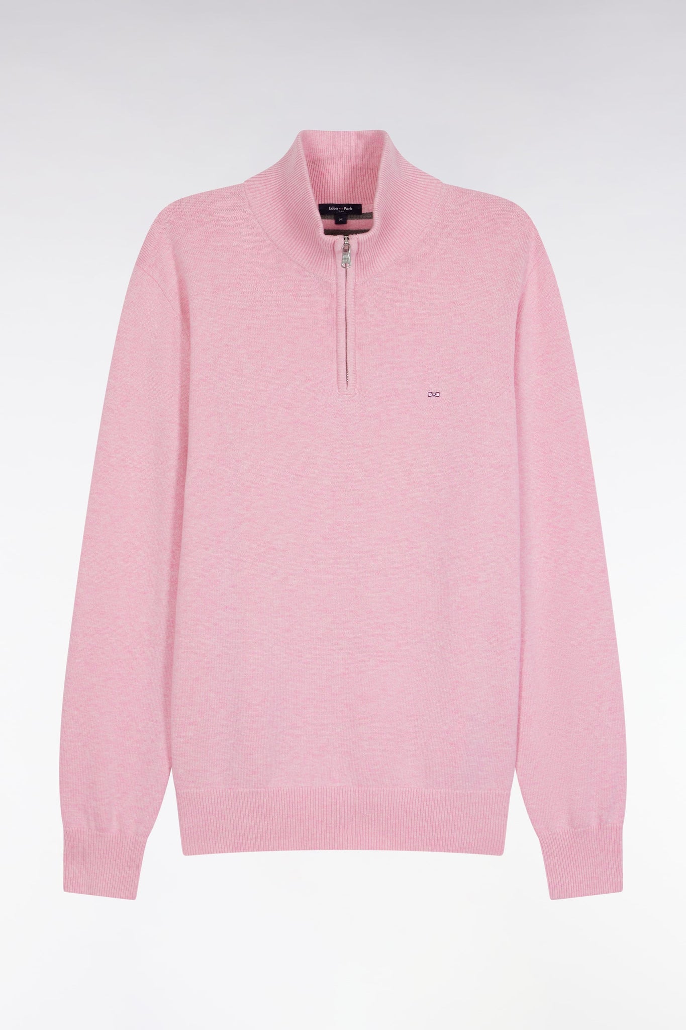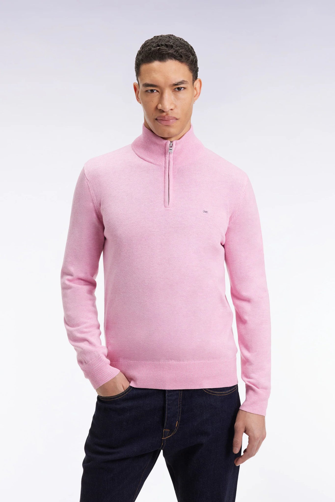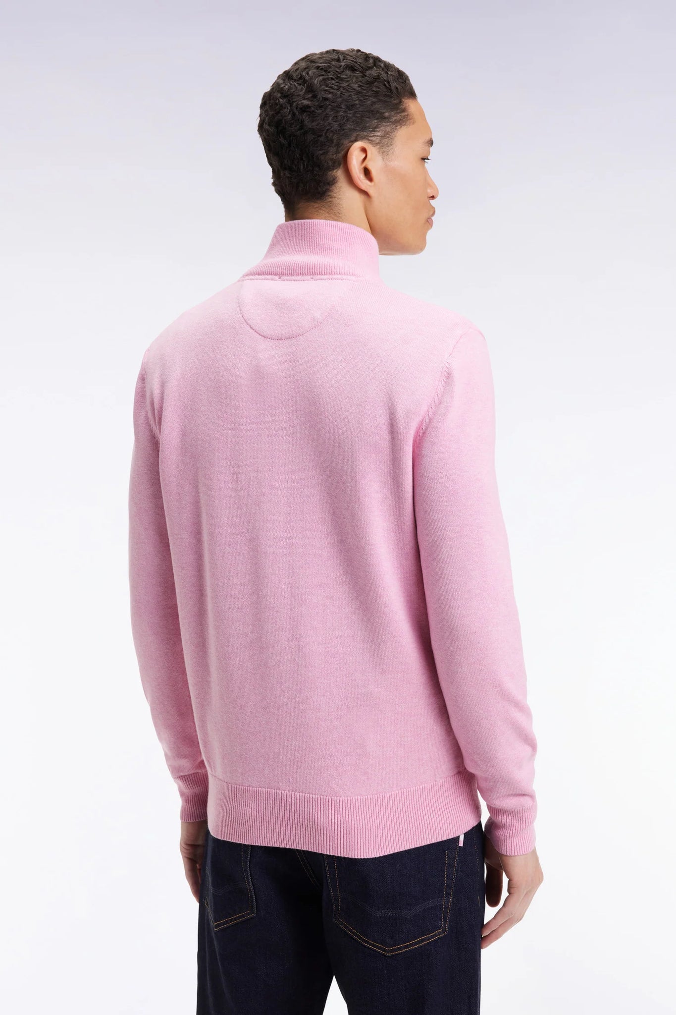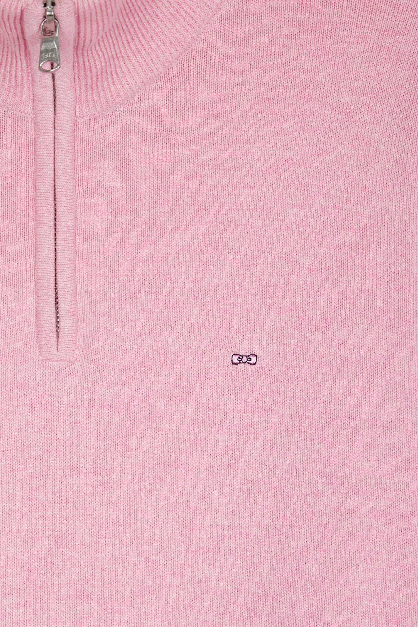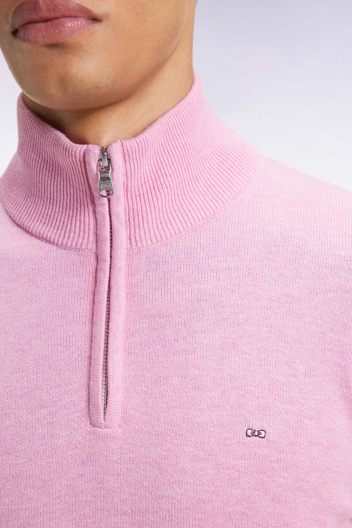 A men's wardrobe classic, the zipped trucker-neck sweater in wool and cotton blend embodies the functional elegance of the Eden Park wardrobe. Its comfortable straight cut lends itself to all kinds of layering. The bowtie embroidery on the chest and the signature slider zip give this timeless sweater the discreet signature of our French house.
