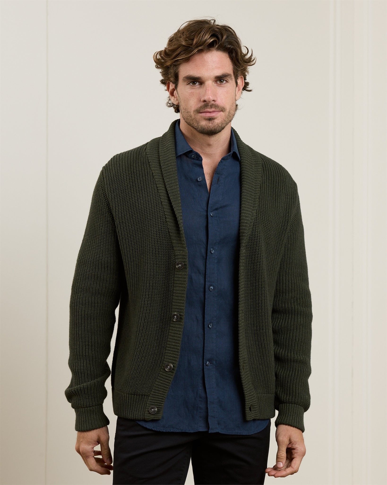 • Load image into Gallery viewer, Magee - Inver Rib Cardigan, Forest Green