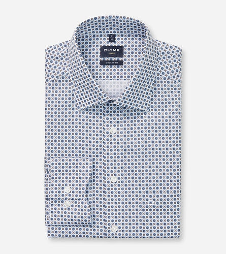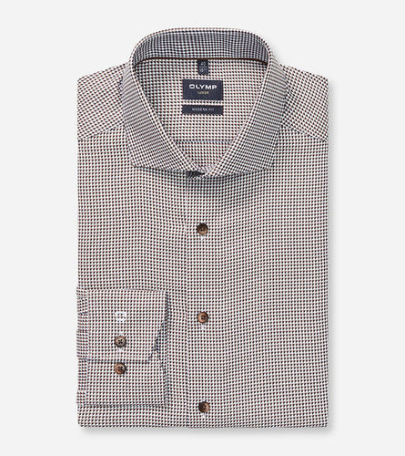OLYMP - Luxor Modern Fit Business Shirt, New Kent, Marine / Brown Pattern